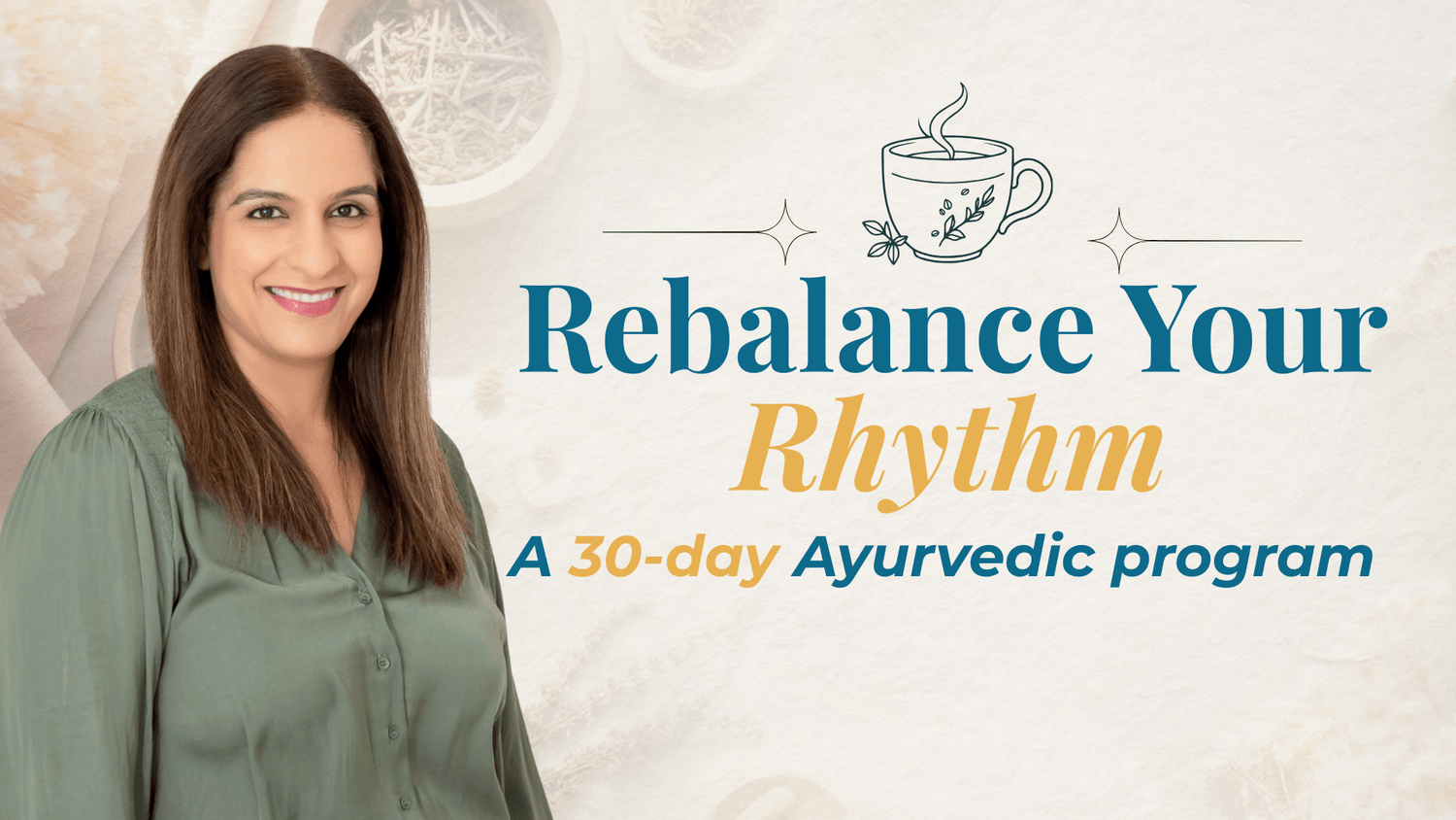 A 30-day Ayurvedic program to calm bloating, lift energy, and reconnect you with your natural rhythm.